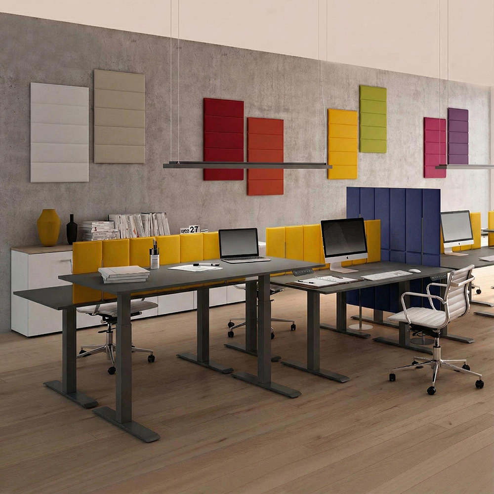 Doria easy up is based on the concept of wellness@work: as is well known, in fact, sedentary work, carried out in a sitting position for 8 hours a day, can cause muscular-skeletal problems and decrease the productivity of the worker. Working in an upright position for at least two hours a day, on the other hand, promotes better circulation, increases productivity and limits back problems.