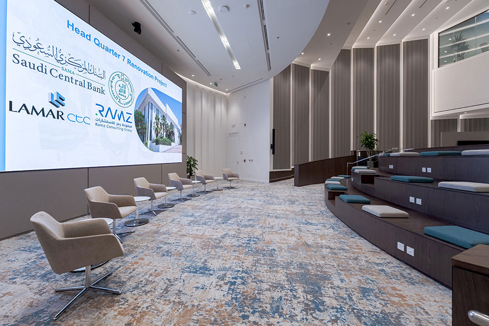 Portée : Rénovation et aménagement d’un bâtiment siège social à Riyad, réalisé par LAMAR CTC, un entrepreneur de conception-construction de premier plan réputé pour sa collaboration avec certaines des agences gouvernementales les plus prestigieuses du Royaume d’Arabie saoudite.