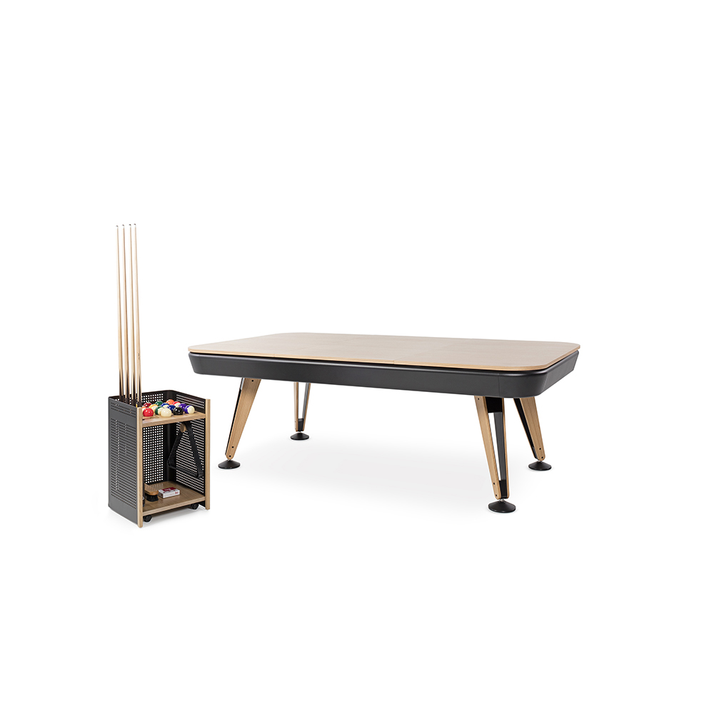 Potete riporre tutti i vostri accessori da biliardo nella versione Diagonal floor cue rack. E se desiderate utilizzare il tavolo da biliardo anche come tavolo da pranzo, il nostro piano da pranzo vi offre questa doppia funzionalità .