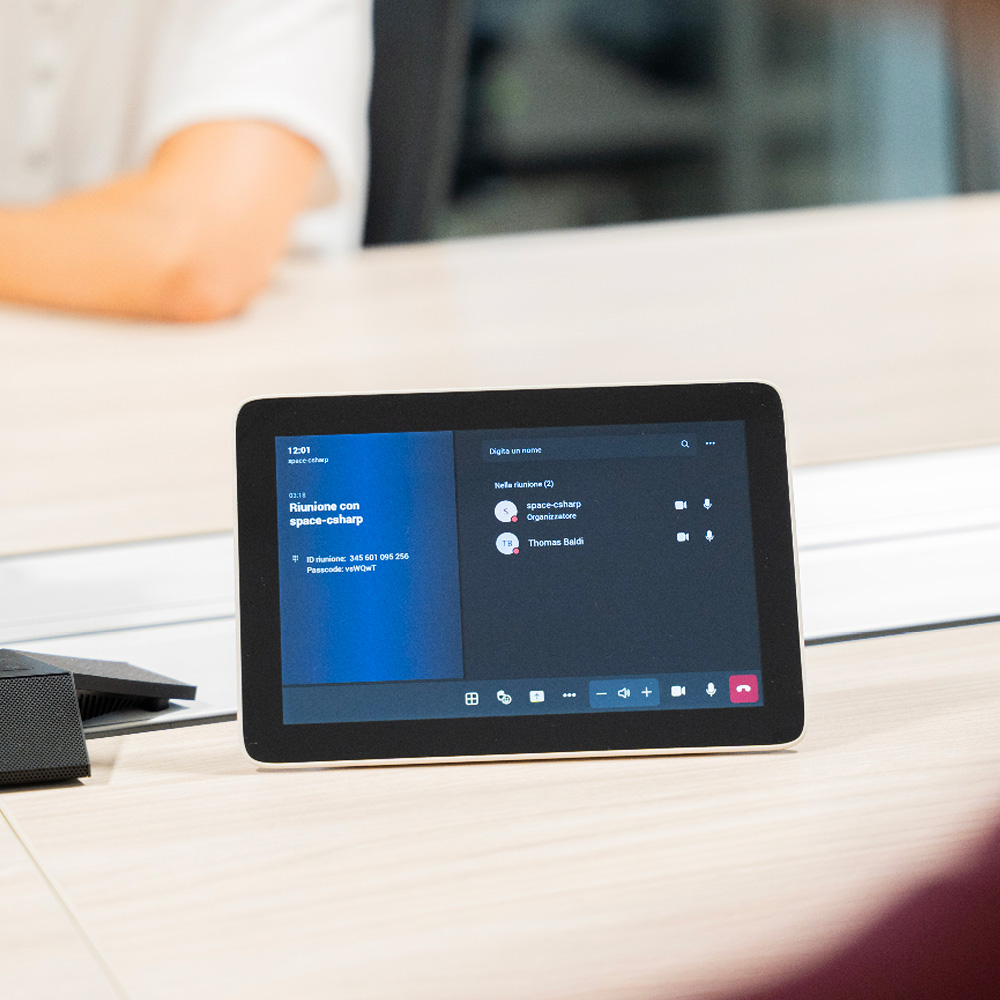 La gestione del meeting e la condivisione delle informazioni avvengono attraverso un touch-panel da tavolo, facile da utilizzare grazie ad interfacce user-friendly.