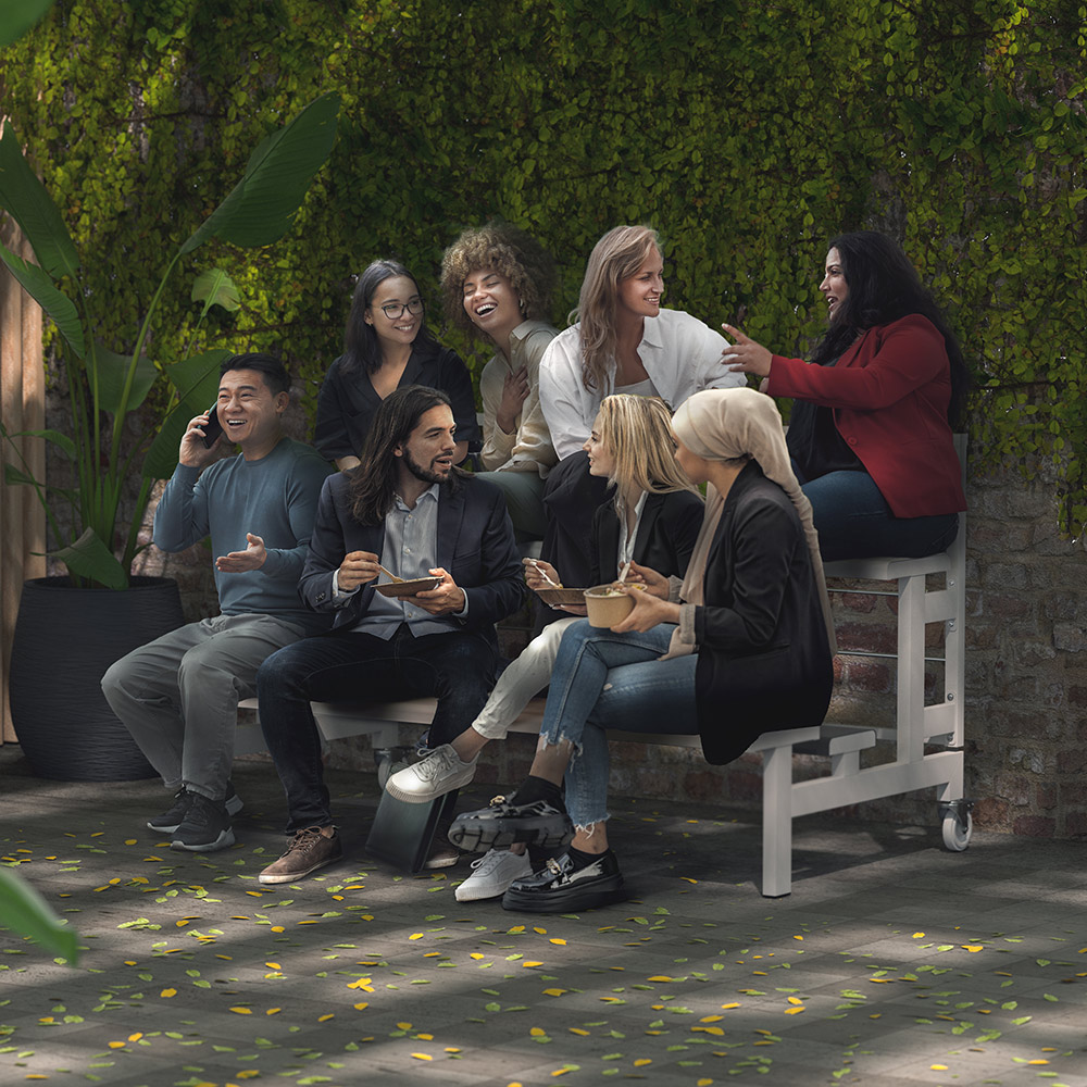 La sua struttura semplice le conferisce leggerezza visiva, mentre la robustezza del suo telaio metallico le conferisce la stabilità e la solidità necessarie per ospitare comodamente otto persone. Crew si sposta facilmente da uno spazio all'altro, offrendo la funzionalità e la flessibilità richieste dagli spazi di lavoro inclusivi e dalle aree comuni. Non necessita di preinstallazione o di fissaggio alla parete o al pavimento, per cui è possibile unire tutti i Crews necessari e combinare i suoi 8 colori con assoluta libertà di movimento e di posizione. Spostarlo a destra, spostarlo a sinistra. Spostarlo in alto, spostarlo in basso, per creare il punto di osservazione perfetto per la squadra.